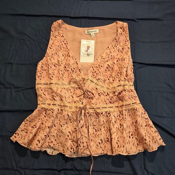 NWT Pretty Garbage Leopard Print Split Hem Tank Top Sz L Boho Coastal Cowgirl