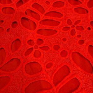 NWT Pretty Garden Red Eyelet Overlay Off / On Shoulder Dress Lined Size Small