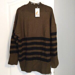 NWT, Pretty Garden - Striped Tunic Sweater, Olive & Black - Large