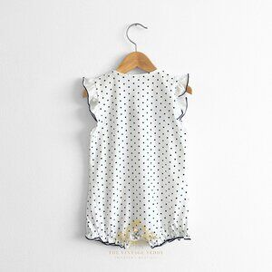NWT Pretty Girls One-piece Romper Bubble Ruffled Polkadots White & Navy 3-6M