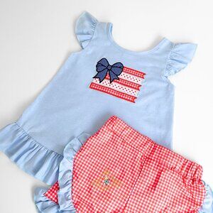 Item: Pretty Girls Top & Shorts 2 Piece Matching Set Embroidered Patchwork American Flag 4th of July Classic Americana Style Cute Baby & Toddler Girls Outfit, Casual Clothes for Little Girls, Cute Kids Clothes, Pretty Matching Sets for Little Girls, Bohemian Clothes for Little Girls, Boutique Clothing for Little Girls, Pretty Baby & Toddler Outfits for Girls, Cute Spring & Summer Clothes for Kids, Cute American Princess Clothes for Girls, Cute Spring & Summer Girls Outfits, Pretty Tops & Shorts for Girls, Cute 4th of July Outfit for Girls, 4th of July Clothes for Little Girls, Pretty Girls American Flag Clothes, Cute Summer Clothes for Little Girls