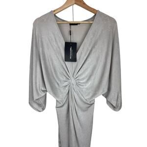 NWT Pretty Little Thing 6 Ice Gray Slinky Twist Front Kimono Sleeve Midi Dress