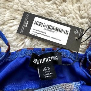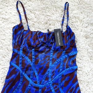 *NWT* Pretty Little Thing Blue Leopare Print Mesh Binding Midaxi Dress Sz S US 4