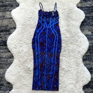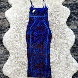 *NWT* Pretty Little Thing Blue Leopard Print Mesh Binding Midaxi Dress Sz S US 4