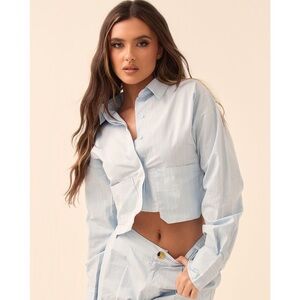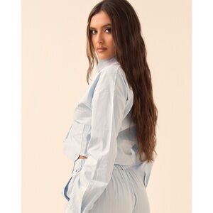 NWT Pretty Little Thing Blue Poplin Pinstripe Cropped Shirt
