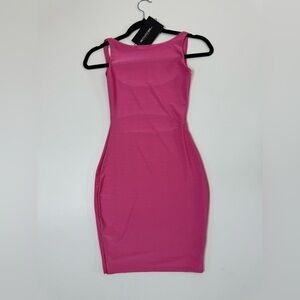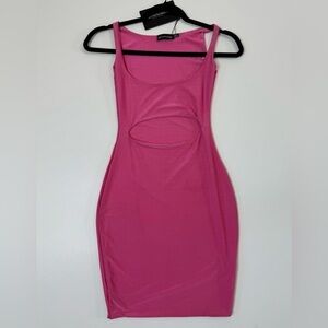 NWT Pretty Little Thing Bubble Gum Pink Cut Out Bodycon Dress Size 0