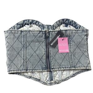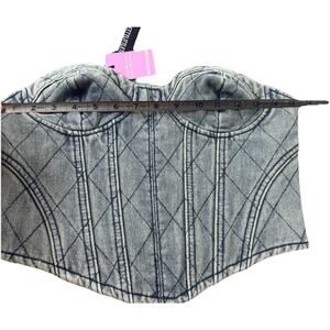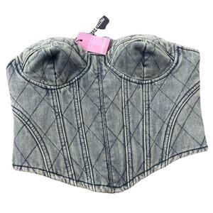 NWT Pretty Little Thing Denim acid Wash Denim Corset Bustier Crop Top Y2K Sz 4