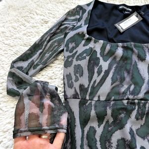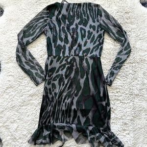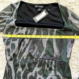 *NWT* Pretty Little Thing Green Long Sleeve Mesh Mini Side Ruched Dress US Sz 4