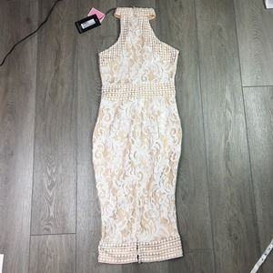 NWT Pretty Little Thing Lace Crochet High Neck Midi Dress White Size 2
