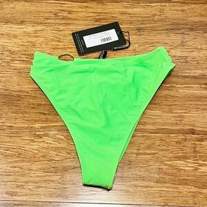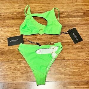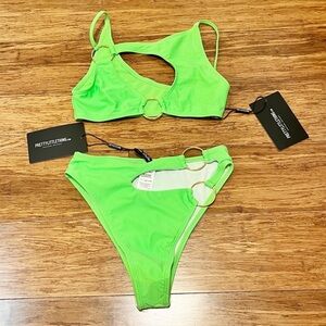 NWT! Pretty Little Thing Lime Green Ring Cut Out Bikini Top & Bottom. Size 0