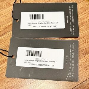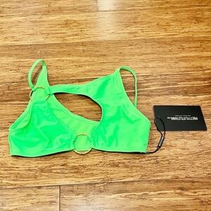 Brand New With Tags! NWT! PrettyLittleThing Pretty Little Things Lime Green Minimal Ring Cut Out Bikini Top & Bottom. Size 0