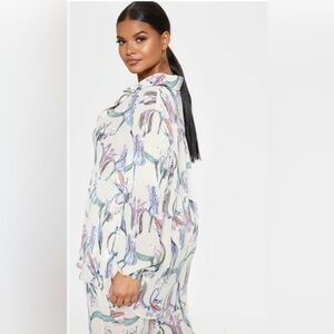 NWT Pretty Little Thing PLUS DUSTY PINK FLORAL OVERSIZED Button Up SHIRT