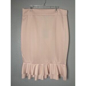Pretty Little Thing Pink Stretch Knit Midi Skirt Ruffle Flounce Pull On Sz 18
