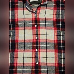 Stylish plaid shirt featuring a classic red, blue, and white pattern. Perfect for casual outings or layering. Enjoy comfort and style with this versatile piece.