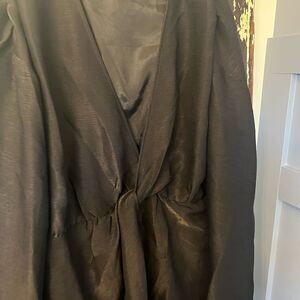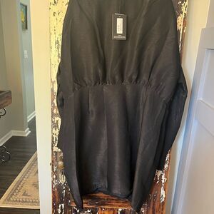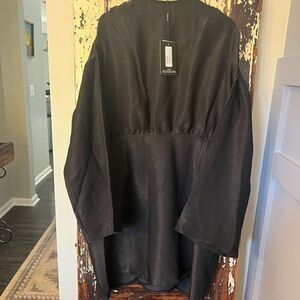 NWT Pretty Little Thing Plus Black Glitter Twist Front Wrap Shift Dress. Size 18
