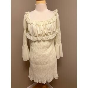 NWT Pretty Little Thing Plus Cream Chiffon Shired Bodycon Dress Sz UK 16/US 12