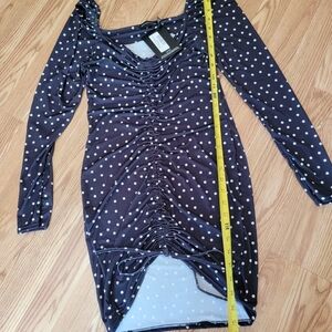 NWT Pretty Little Thing Polka Dot Ruched Front Long Sleeve Bodycon Dress 8