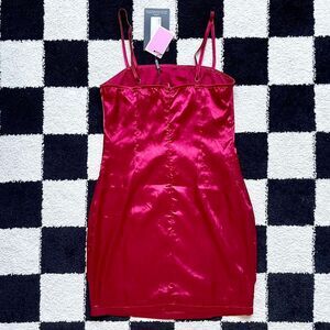 Red satin dress from Pretty Little Thing, new with tags and sold out on their website! Fits bodycon and has a zipper in the back. Straps are adjustable. No flaws!