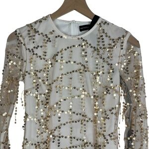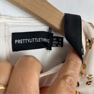 NWT PrettyLittleThing Rose Gold Cream Sheer Sequin Mini Dress Size US 4 HOCO Prom Party