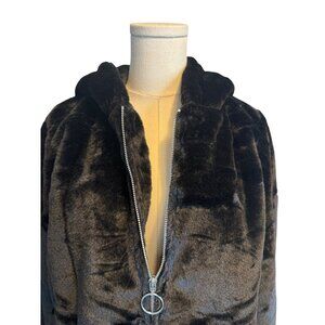 NWT Pretty Little Thing Small Faux Fur Hooded Jacket Black Plush Polyester