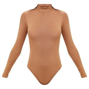 NWT Pretty Little Thing Turtleneck Bodysuit Womens 10 Camel Brown Neutral Basic