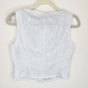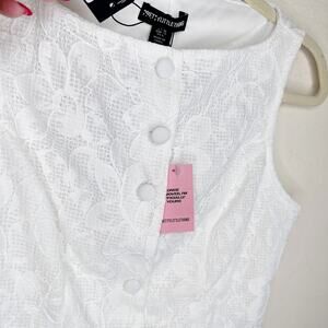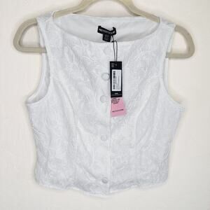 PrettyLittleThing White Floral Lace Cropped Button Up Boatneck Sleeveless Vest Top & Pleated Micro Mini Skirt 2 Piece Bundle Matching Set