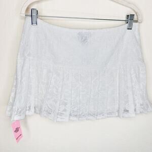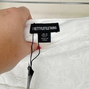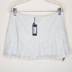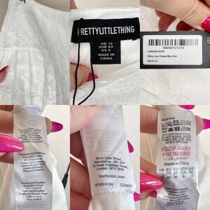 NWT Pretty Little Thing White Lace Boatneck Top Pleated Mini Skirt Two Piece Set
