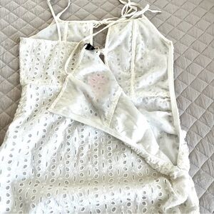 NWT Pretty Little Thing White Broderie Anglaise Tie Strappy Ruched Chiffon Bodycon Dress.