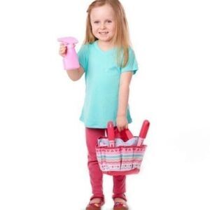 With this kid-friendly garden tote, complete with tools, getting help in the garden just got easier! The sturdy plastic trowel and cultivator are just right for little helpers three and older and are easy to keep organized in this durable and brightly colored fabric tote with woven handles. An included spray bottle helps keep plants watered and little gardeners cool! Use it inside for pretend play or outside when kids want to do some digging.