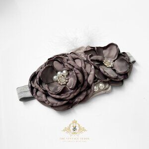 NWT Pretty Vintage Inspired Girls Headband Floral Beaded Feathers Gray OS