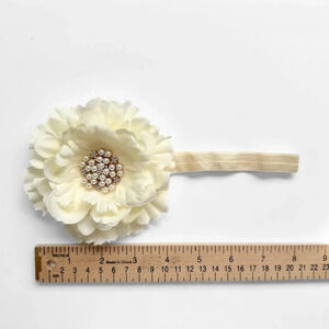 Details: Rhinestones, Faux Pearl Beads, Elastic Headband, Fabric Flower Petals