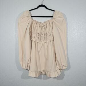 NWT PrettyLittleThing Beige Stone Ruched Frill Tea Dress Size 10