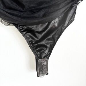 NWT PrettyLittleThing Black Sheer Ruffle One Shoulder Bodysuit sz 2