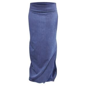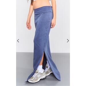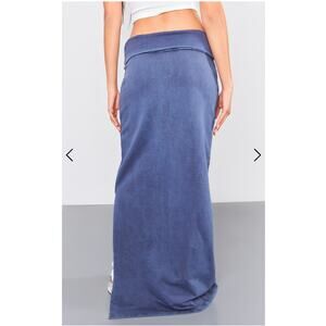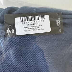NWT PrettyLittleThing Blue Acid Wash Cotton Fold Over Maxi Skirt Size 4