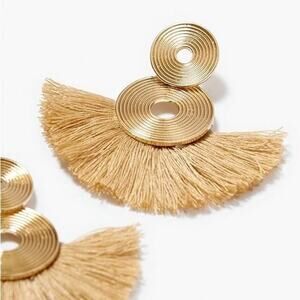 NWT PrettyLittleThing Chic Gold Fringe Disk Statement Earrings Drop Dangle Cream