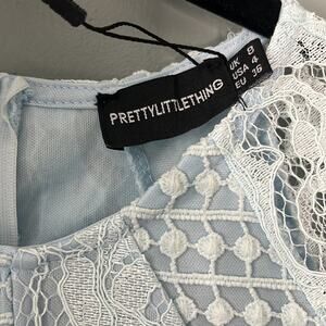 NWT PrettyLittleThing Dusty Blue Frill Hem Lace Bodycon Size 4