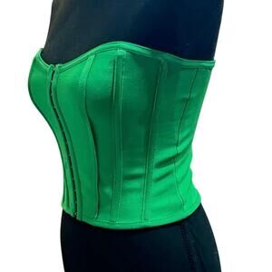 New with tags PrettyLittleThing structured corset top in bold green. Features a hook & eye front closure, bandage-style stretch fabric, and a sculpted fit to snatch the waist and enhance your silhouette. Size US 4 (UK 8). Approx. 11.5” length.