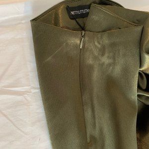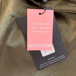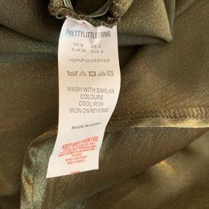 NWT PrettyLittleThing Khaiki Satin Ruched Side Split Leg Maxi Size 4
