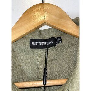 NWT PrettyLittleThing Khaki Linen Look Oversized Long Sleeve Playsuit Size 12