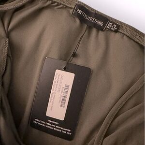 New with tags! PLT PrettyLittleThing Khaki Olive Green Cowl Neck Dress.