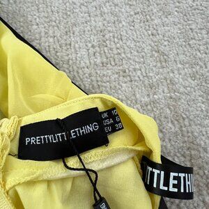 NWT PrettyLittleThing Lemon Yellow Long Sleeve Ruffle Dress 6