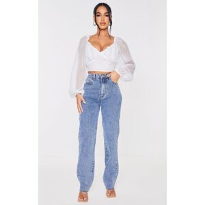 NWT PrettyLittleThing Petite White Dobby Mesh Chiffon Sweetheart Blouse- Sz 0