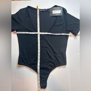 NWT PrettyLittleThing Plus Black Ribbed Plunge Short Sleeve Bodysuit Size 12