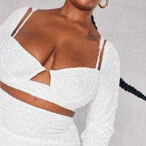 NWT PrettyLittleThing Plus White Leopard Devore Corset Crop Top
