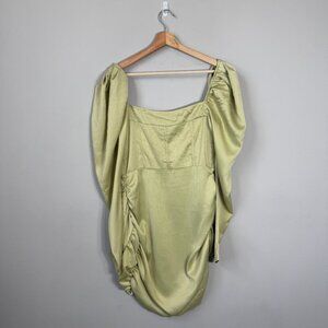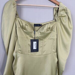 NWT PrettyLittleThing Puff Sleeve Corset Bodycon Mini Dress Womens 6 Olive Green
