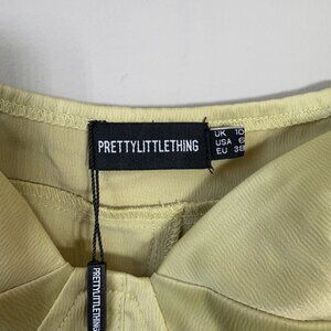 This is a new with tags PrettyLittleThing mini dress in size 6, featuring a sweetheart neckline and long puff sleeves with a corset-style bodice. The dress is a bodycon style in olive green satin fabric, with a zip closure at the back. Suitable for various occasions such as travel, weddings, parties, and formal events, this dress is designed to be flattering with its slimming and high waist features. Perfect for the seasons of winter, summer, fall, and spring, this dress offers a stylish and trendy option for women looking for a versatile and chic outfit.