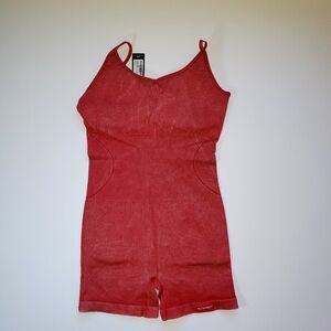 NWT PrettyLittleThing Red Acid Wash Seamless Gym Unitard Sz XXL