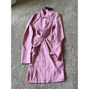 NWT PrettyLittleThing Rose Knot Detail Wrap Dress Pink Night Out Sexy Y2K