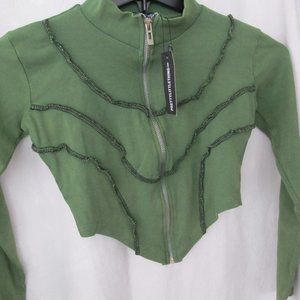 New with tags - PrettyLittleThing Shape Soft Rib Seam Detail Long Sleeve Cropped Jacket. Nice green coloring with seam details. Zip close front. Size UK 6/EUR 34/ US 2. Cotton/elastane blend.