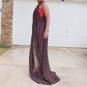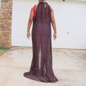 Make a major statement with this PrettyLittleThing sheer maxi piece! This versatile sleeveless button-up can be worn as a long tunic top, a maxi shirt dress, or a duster/vest over a simple outfit. Perfect for layering at a festival, vacation, or for a trendy evening look.